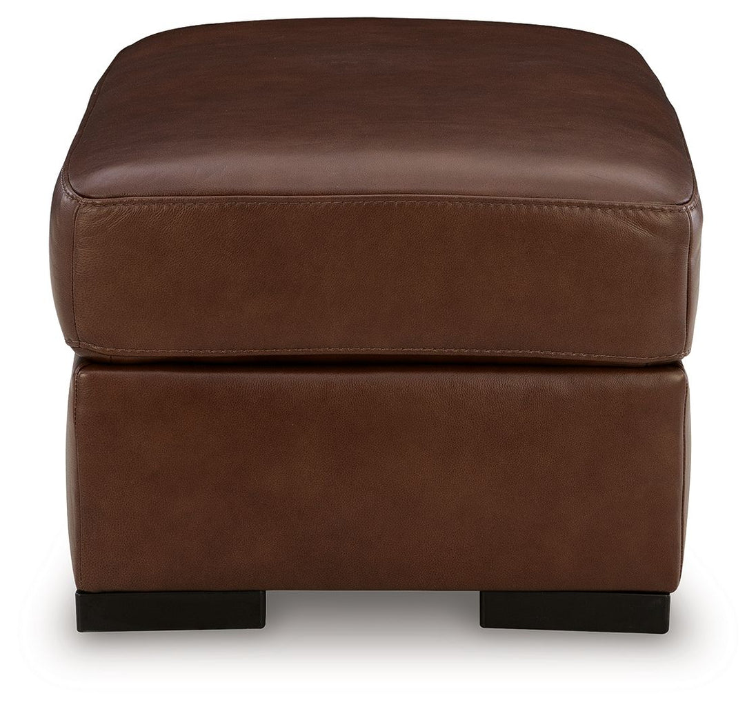 - 100% top grain leather covers the cushion top; skillfully matched faux leather covers the remaining areas