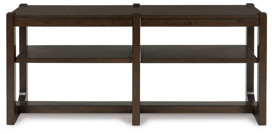 If casual contemporary style is your thing, then you'll love this sofa table. A wood-tone finish with a rich, dark grain contrast lends a soothing sensibility, while two independent adjustable shelves add function to great form....Sale price $459.99Regular price $699.99Sale price $459.99Regular price $699.99 -