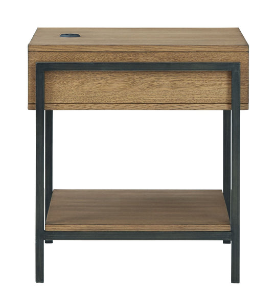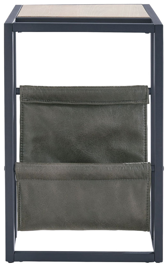 Freslowe - Chair Side End Table with Magazine Basket - Light Brown / Black