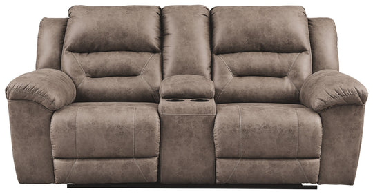 Stoneland - Dbl Reclining Loveseat W/Console - Faux Leather - Fossil