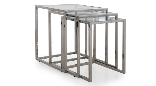 I 3441 Nesting Table - 2pcs Set / Chrome Metal W/ Tempered Glass
