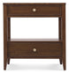 The Archives Two-Drawer Nightstand offers both style and functionality, perfect for bedside storage. Crafted with figured quartered walnut veneers and a Classic Walnut finish, it features two spacious drawers and an open storage space between them. Satin brass custom knob hardware adds a touch of luxury, making this nightstand a sophisticated addition to any bedroom.