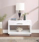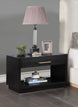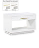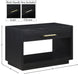 Give your room a makeover with this Avery black wood veneer night stand from Meridian Furniture. This open-spaced, rectangular night stand features rich ash wood veneer and a black finish, ensuring it complements your existing bedroom decor. Complete sets of gold and chrome handles are included so you can choose which color best suits your decor. A small drawer in the front provides you with extra space to store reading glasses, nighttime reading material, and more.