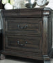 Warm and inviting like an old French friend, Bellamy welcomes with European inspired styling in a unique Peppercorn finish and matte black pewter accented hardware. Scrolling open woodwork adorns the well appointed media chest doors while roomy dressers and chests feature rounded corners atop rounded bun feet. A plethora of bed options offer upholstered tufted headboards, storage footboards, panel headboards and gorgeous shaped panels with or without sumptuous scrolled design work for a Chateau feel for any taste.