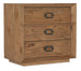 With an American West vintage charm, the Big Sky Nightstand has a straightforward silhouette design crafted of Pecky Hickory Veneers with a solid-wood edged top. Finished in the warm and rustic Vintage Natural, the piece is accented by dark brushed bronze pulls in a buckle style. With three self-closing drawers, the top drawer has a removable felt liner. There’s a power supply and a cord clip on the back, and the bottom drawer is cedar-lined.