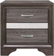 Product Description: The unique styling of the Luster Collection presents a glamorous option for your bedroom. The nightstand's embossed faux-wood veneer features a gray finish that allows for the acrylic silver glitter front of the hidden jewelry drawer to shine. The jewelry drawer features felt lining to protect your hidden items from wear and tear. Polished chrome bar drawer pulls front the drawers providing complementing contrast to the collection's finish.