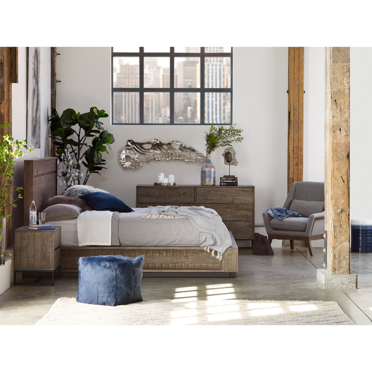 Give your bedroom a uniform industrial look with a rustic feel. Clean lines and industrial detailing make the Elena Nightstand the perfect addition to your bedroom. With a light stain on its solid pine wood, this nightstand blends in seamlessly with the rest of the Elena collection.