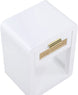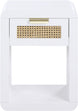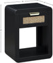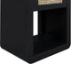 Lend your bedroom a distinctive touch with this Langham black night stand from Meridian Furniture. Featuring an open, rectangular design and a natural cane drawer front, this night stand is truly unique. A sleek black finish complements the existing decor in your bedroom; both brushed brass and chrome handles are included so you can choose which one best matches your decor. This night stand's mid century design is the perfect addition to your living space.