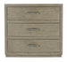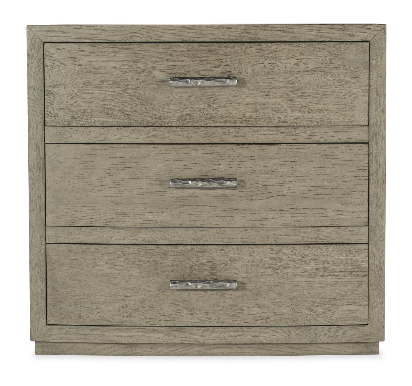 With a rustic weathered finish and clean modern lines, the Ashford Nightstand has three self-closing drawers and a double USB charging post on the back, along with a cord clip. Crafted of Oak Veneers, the nightstand is finished in Mink, a soft smoked gray color, and accented with textured metal bar pulls in an antique pewter finish for an organic touch.