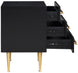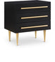 Turn to the Marisol night stand to make a big impression in your modern bedroom. This contemporary piece looks great on its own or paired with other items in the Marisol collection. Eye-catchingly elegant, this piece features a rich black finish with brushed gold metal legs and handle for an up-to-the-minute vibe in your bedroom sanctuary. Minimalist hardware adds functionality without overpowering the unit. Wood construction adds to its durable design.