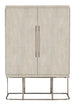 - Finish: Diamond finish: flat cut quartered oak veneers with wire-brush detailing in a light finish with crystal-like alabaster and pewter hues delivering a soft sophistication. Brushed metal in warm pewter finish. Bar pulls wrapped in leather.