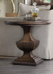 Bedside, chairside or as an accent table, the Rhapsody Urn Pedestal Nightstand exudes casual opulence with its combination of a relaxed rustic finish and design details like the classical urn shape and intricate acanthus leaf carving on the base. Crafted of Pecan Veneers with a Walnut-colored finish.
