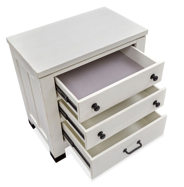 Heron Cove Relaxed Traditional Chalk White Three Drawer Nightstand