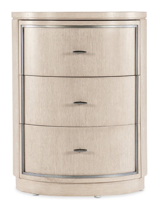 A brilliant blend of materials, the Nouveau Chic Round Nightstand combines Oak Veneers, a White Marble inset top and a metal frame and delicate oblong pulls. With a softly rounded shape, it features three self-closing drawers...Sale price $2,409.00Regular price $2,599.00Sale price $2,409.00Regular price $2,599.00