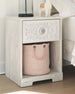 - Spacious smooth-gliding drawer; vinyl-wrapped sides and back for extra durability; open cubby