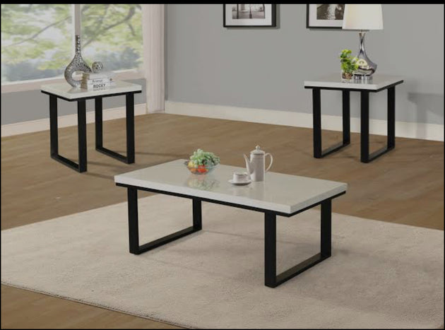 Linton 3-Piece Coffee Table Set – Wooden Tops with Black Metal Base