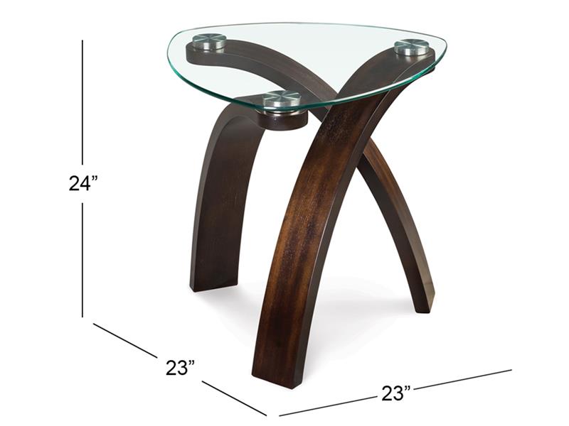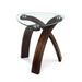The Allure table collection brings a distinctive contemporary look and urban feel with its unique criss-crossed arched bases and shaped glass tops. Featuring bases crafted of walnut veneers and bent plywood solids and tabletops featuring tempered glass and stainless steel pucks this collection provides a unique, modern look making a bold eye-catching statement.