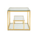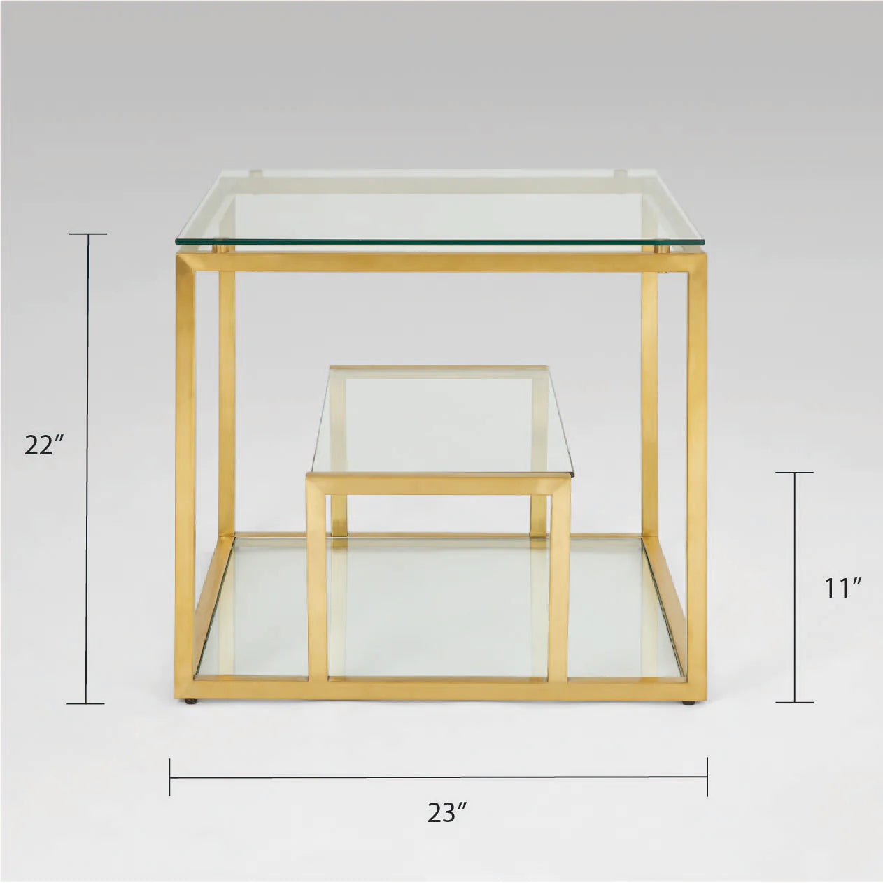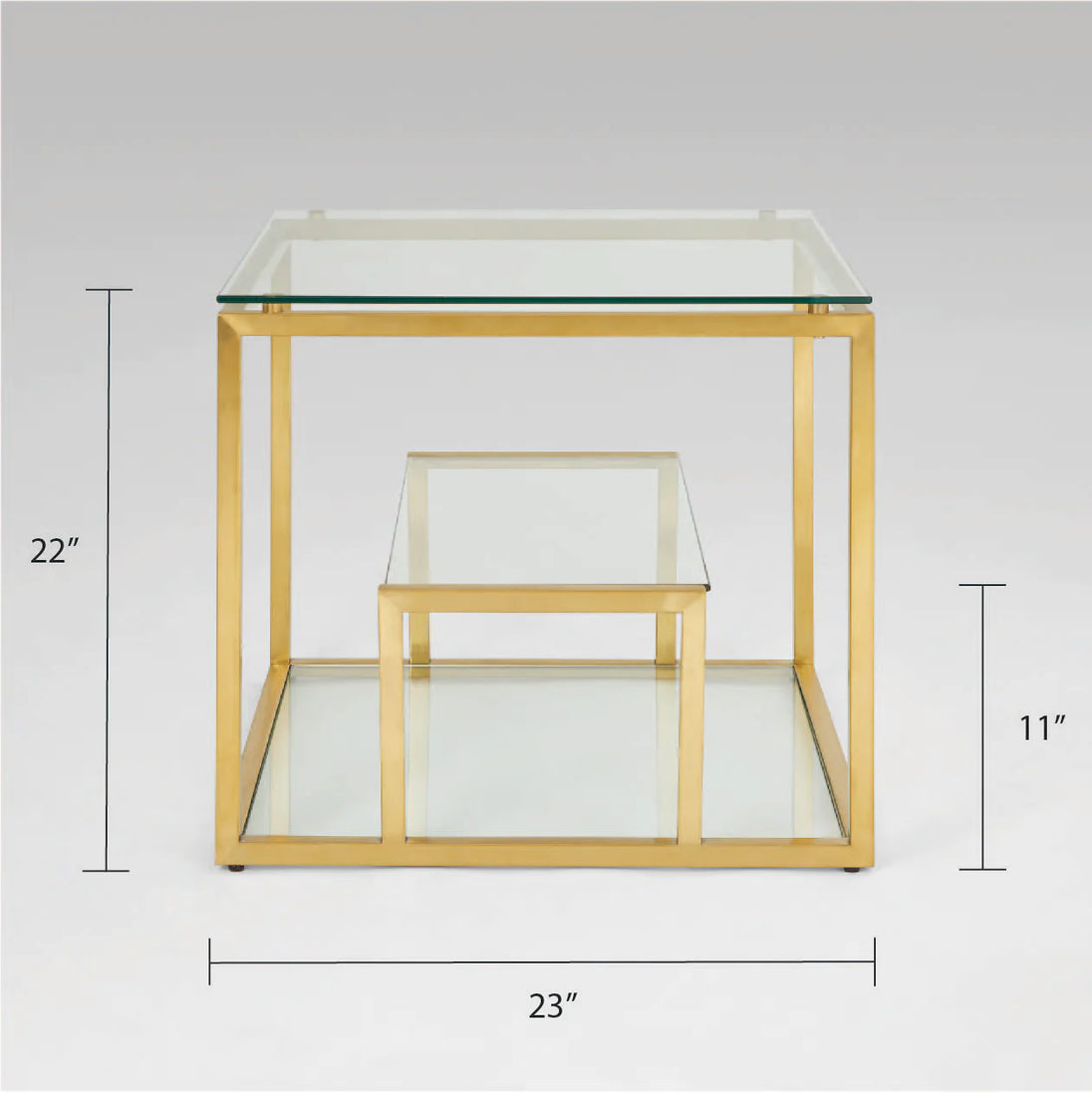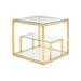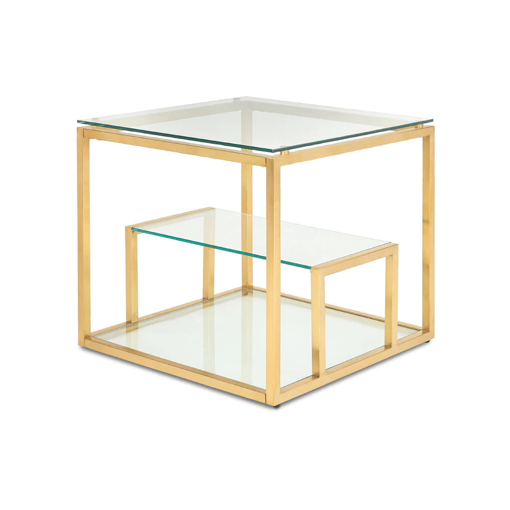 Simply chic. The Barolo end table offers three levels of tempered glass to achieve maximum storage and display. The multi-level design adds layers and complexity to your living room space. Combined with a brilliant brushed gold stainless steel base, this coffee table offers more than just functionality. The notably open and contemporary design adds a touch of glamour to your interior design. Shop the entire Geneva collection for an easy solution to your home decor space.