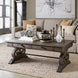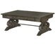 Old World charm abounds in the Bellamy table collection. Gracious S-curved carved bases support overlaid solid pine tops finished in vintage inspired Deep Weathered Pine. Antique brass with Pewter overlay metal stretchers and hardware create the perfect accent to set the mood for stunning European influenced elegance