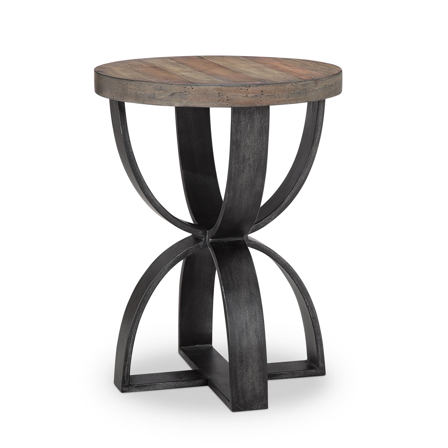 With echoes of equestrian inspired fashion, Bowden extends rustic hospitality with upscale appeal. Distressed iron has been artfully forged into a stirrup like ‘U’ shape and rests inside squared bases to uniquely support aged looking Rustic Honey wood tops on the rectangular end table, cocktail table and sofa table. Mirror image interlocking ‘U’s’ create the exceptionally striking round accent table base to complete a great room with that perfect accessory piece.