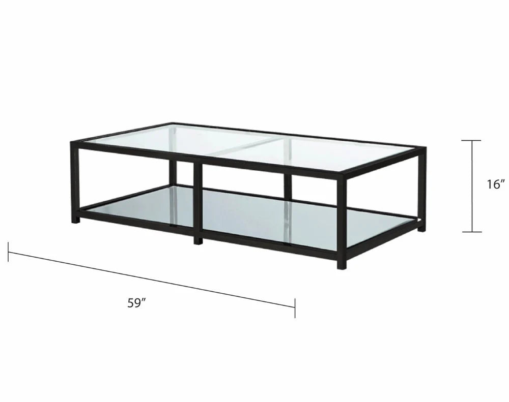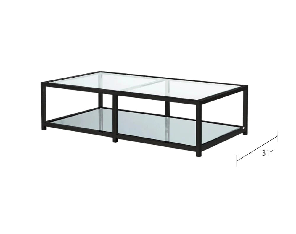 The Caspian Black Metal Rectangular Coffee Table is a true statement of modern sophistication. With its sleek black metal frame, tempered glass top, and mirrored bottom shelf, this exquisitely designed piece adds a touch of contemporary glamour to any living space. The reflective surfaces create an open and airy ambiance, making even smaller rooms feel more spacious and refined.
