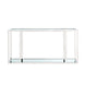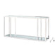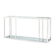 Peek-a-boo. The exquisitely designed Caspian console table draws attention to your living spaces. With its polished stainless steel frame and mirrored base, it creates an open and airy atmosphere, so even small spaces can look and feel spacious. Ideal for narrow spaces, foyer settings, or as an accent table placed behind the sofa to display your home decor. Instantly create a seamless living decor by featuring the entire Fabian series which includes coffee, console, and end tables.