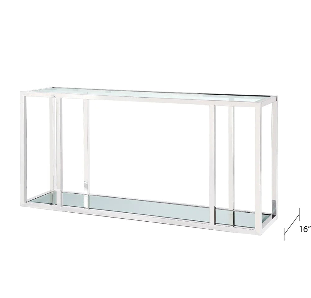 Caspian Sofa Table Stainless Steel frame, glass & mirror tops