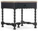 Exuding charm and character, the Ciao Bella Rectangular End Table contrasts a black base with a Flaky White top. Crafted of Poplar and Hardwood Solids and Maple Veneers, the finish is hand chiseled and wire brushed, giving the appearance of aging through the generations. The turned legs and stretchers have a vintage appeal.