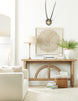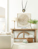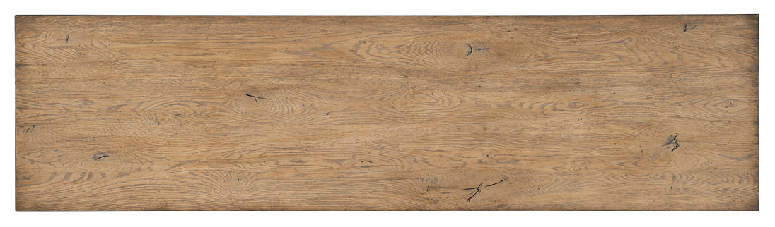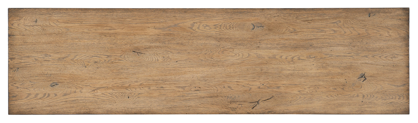 With an Arts & Crafts appeal, the Commerce & Market Console has a fresh natural light wood finish and features a half-circle motif base and stretcher.