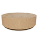 The Kalla Coffee Table brings form and function to life. Crafted with rustic oak wood and oak veneer with vertical reeding. A brushed gold steel base finishes the look. As wood is an organic, porous material, these pieces will contain natural variation of texture and may also exhibit fine indentations and cracks. Wood pieces will also display a disparity of colour and grain, and visible knots and burls that add to the character of each piece.