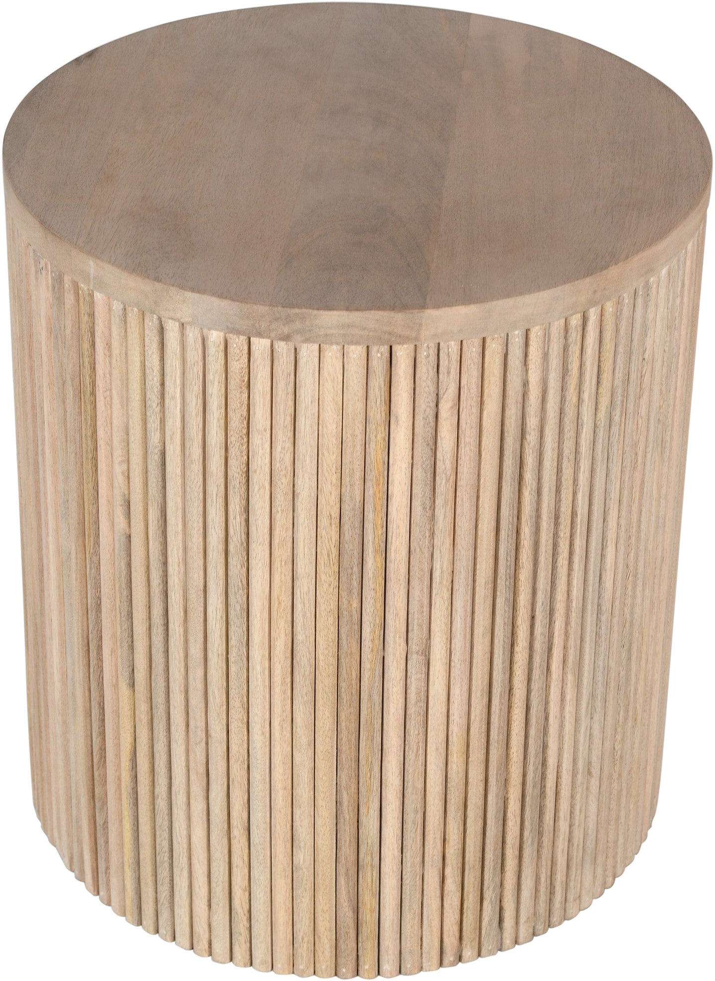 Bring contemporary design to the forefront with the addition of this Oakhill End Table to your living room or den. This eye-grabbing design features solid mango wood construction, so you can count on its durable demeanor to hold up to the rigors of use in your busy home. The fluted wood design is chic and contemporary, adding a distinctive modern vibe to your room in an instant. A white oak finish tops off the look of this Oakhill end table, adding to its visually striking beauty.
