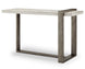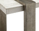 Wiltshire is a stunning modern example of mixed materials that creates chic sophistication. Smooth, sleek Sea Shell marble veneer tops are supported effortlessly by Champagne Bronze finished hammered metal interlocking rectangles. A chunky metal rectangle overlaps the top at one end as the other understated metal rectangle sits underneath on the rectangular end table, conversation stopping cocktail and stunning open sofa table that would complement contemporary upholstered settings delightfully.