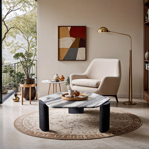 Pozzuoli Panda Marble Mango Wood Coffee Table
