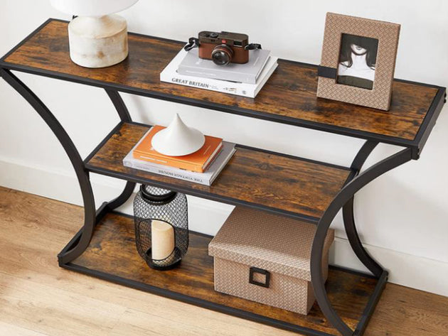 Premium Console Table Reclaimed Wood Look Black Metal Shelf