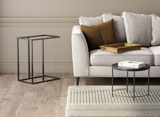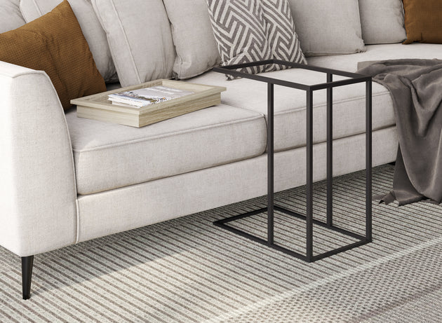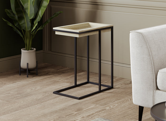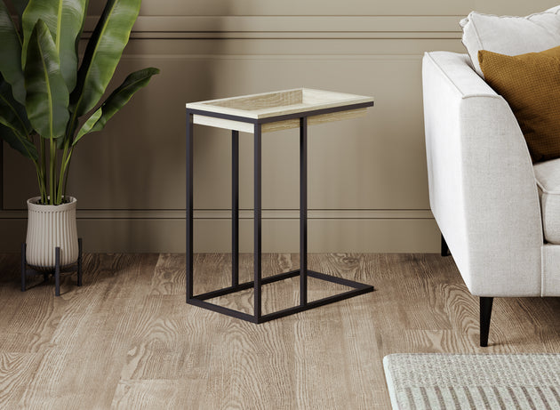 C-Shaped End Accent Table Brown Reclaimed Wood Sunkey Tray Black Metal