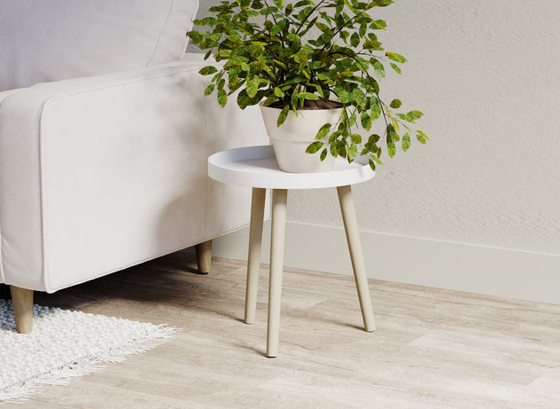 White Round Top Side Table Pine Base Multi-Use
