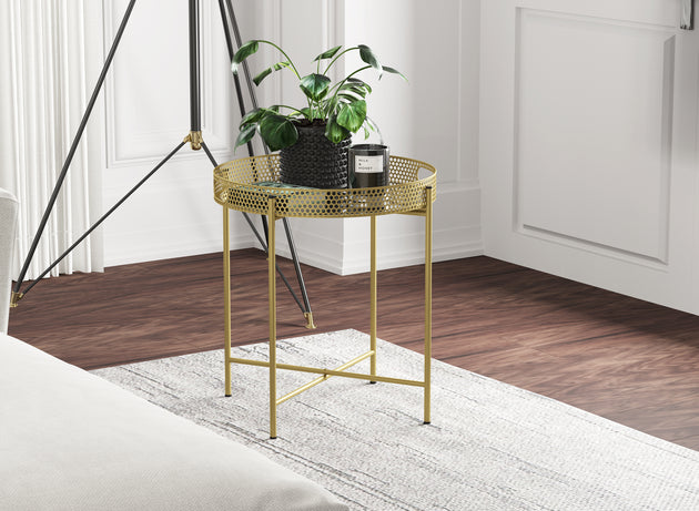 Round Multi-Use Side Table Gold Mirror Top