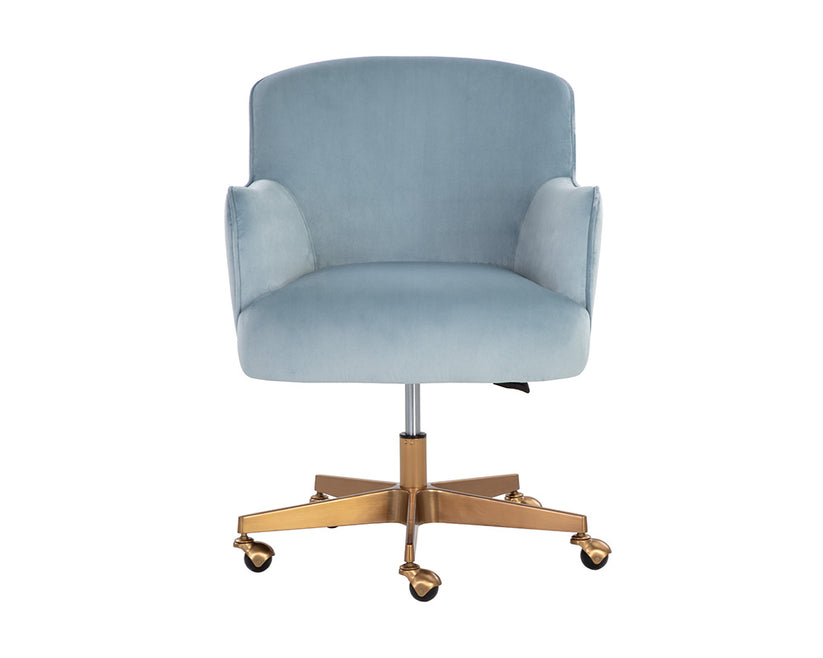 Design a workspace that projects chic comfort with this modern office chair. Features a curved seat in copenhagen white boucle fabric with a gold steel base.