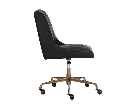 + 3 moreSit back and take it easy in this Hendrix vegan leather office chair. Its soft black vegan leather looks so real, no one but you will know it's not. A rich gold base and coordinating nail...Sale price $480.00Regular price $640.00Sale price $480.00Regular price $640.00 -