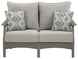 - Seat/back cushions and throw pillows covered in solution-dyed Nuvella® (polyester) high-performance fabric