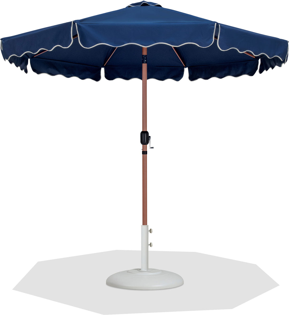 Amalfi - With Cream Piping Aluminum Patio Umbrella With White Base / Teak Pole - Navy