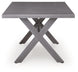 High style crafted for low-maintenance living. Turn your outdoor space into a sweet retreat with this dining table. The casually cool piece entices with an easy-breezy gray finish over an all-weather aluminum frame, for an upscale aesthetic that’s downright durable. Gather round for mealtime, cocktails or game night in the great outdoors.
