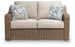Who says the great outdoors isn’t made for luxury living? This outdoor loveseat offers all of the high-end design, plush comfort and durability you could ask for, and then some. Its all-weather aluminum frame and resin wicker provide the easy-breezy look you love without the high maintenance. And rest assured—the high-performing Nuvella® fabric is made to stand up to the elements.