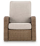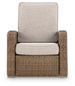 Who says the great outdoors isn’t made for luxury living? This outdoor recliner offers all of the high-end design, plush comfort and durability you could ask for, and then some. Its all-weather aluminum frame and resin wicker provide the easy-breezy look you love without the high maintenance. And rest assured—the high-performing Nuvella® fabric is made to stand up to the elements.