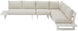 Create your own custom contemporary look on the deck or porch with the addition of this Maldives outdoor patio armless chair. Part of a large collection that lets you mix and match modular pieces to get the look you crave most. This modular sectional has cream water resistant fabric with a base made from white aluminum, so it's sturdy, tough, and ready to face the elements with impeccable beauty, season in and season out. Shop the contemporary pieces in this collection to create the outdoor entertaining area of your dreams.
