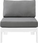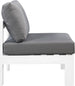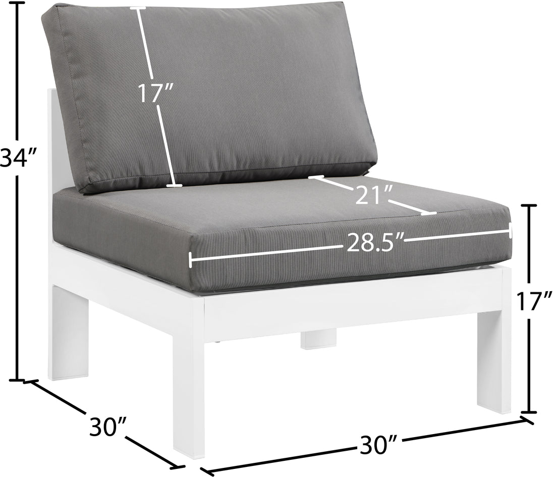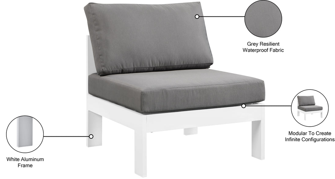 Pick and choose your favorites from the Nizuc collection to create a modular seating group the whole gang will enjoy. The sturdy aluminum frame provides dependable support for friends and family as they relax and unwind, and the resilient grey water resistant fabric stands up to the elements without losing its beautiful demeanor, so you can count on it lasting for the long haul. Latches beneath these seating pieces help you easily attach them to one another for convenient setup.