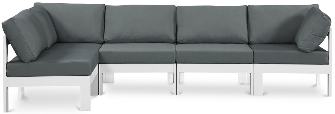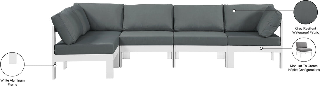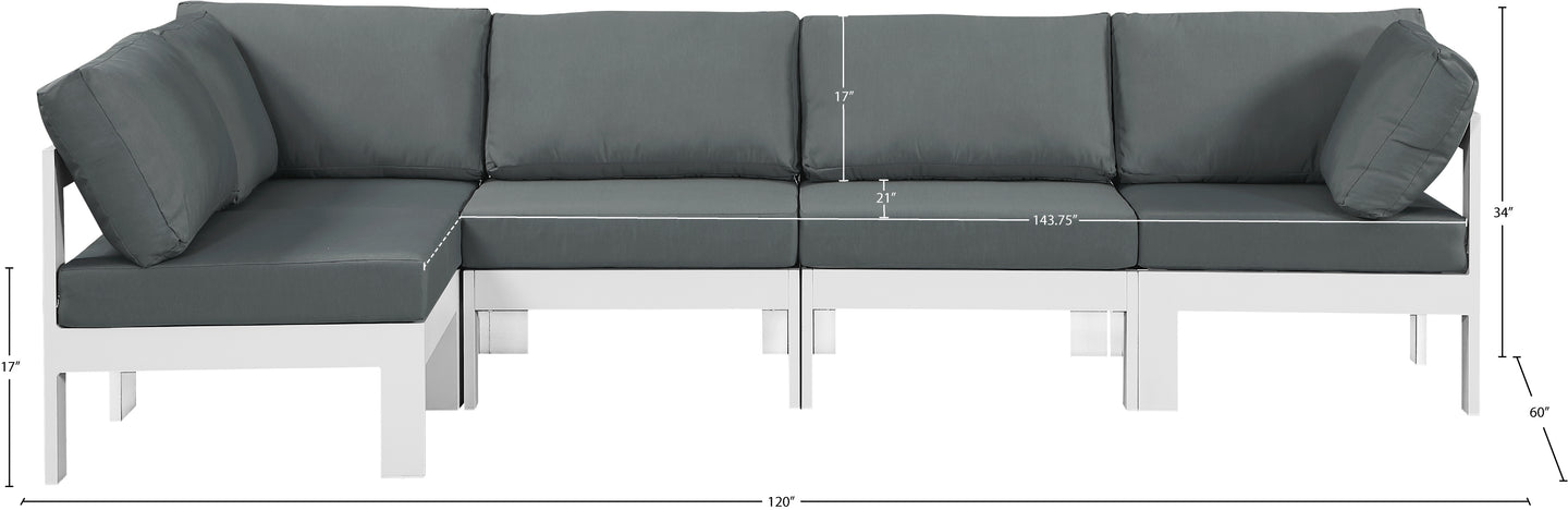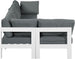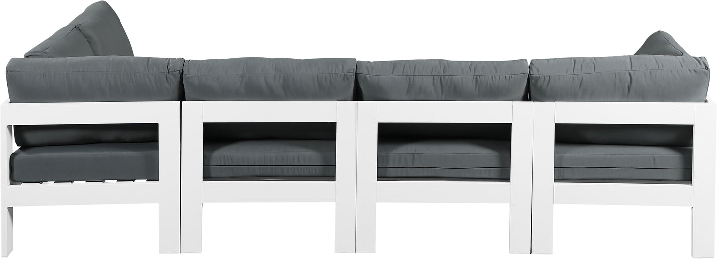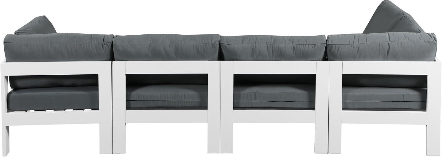 Pick and choose your favorites from the Nizuc collection to create a modular seating group the whole gang will enjoy. The sturdy aluminum frame provides dependable support for friends and family as they relax and unwind, and the resilient grey water resistant fabric stands up to the elements without losing its beautiful demeanor, so you can count on it lasting for the long haul. Latches beneath these seating pieces help you easily attach them to one another for convenient setup.