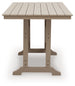 This outdoor counter height dining table is the perfect companion for alfresco living. Its contemporary neutral design creates an effortlessly chic focal point for any deck or patio. Built with a smart slatted construction, it sheds rainwater while delivering exceptional durability that stands up to the elements.