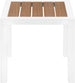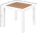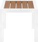 Add the comforts of indoors to your outdoor living space with this Nizuc end table. This sophisticated modern table is an ideal spot for resting a frosty drink on a sunny day. The top of the table is made from brown Wood Look accent paneling and is slatted, so moisture dissipates easily through its cracks. An aluminum frame adds resilient durability to this table's design, ensuring it lasts and lasts, season after season.