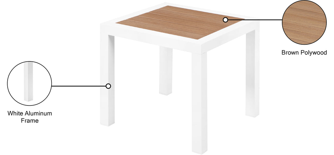 Nizuc Brown Wood Look Accent Paneling Outdoor Patio Aluminum End Table